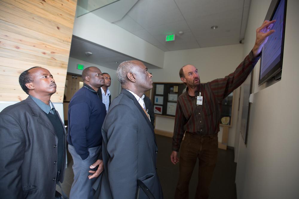 Six visitors from Djibouti, Ethiopia, and Kenya, capped their trip to Colorado on Friday, May 15, with meetings and tours at the National Renewable Energy Laboratory. The African delegation spent the week at the DOE Geothermal Technologies Office Peer Review in Westminster, Colo.